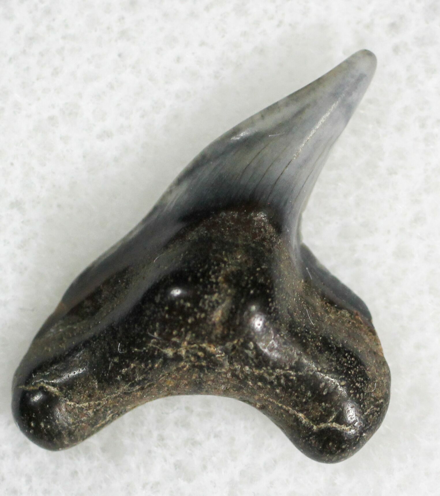 The best way to identify Galeocerdo teeth by species is to look at the size of the tooth and the complexity of the serrations. Generally, larger teeth with more complex serrations point to a shark from a time closer to the present. For example, a tooth from G. cuvier is much bigger and more serrated than a tooth from G. aduncus or G. latidens.