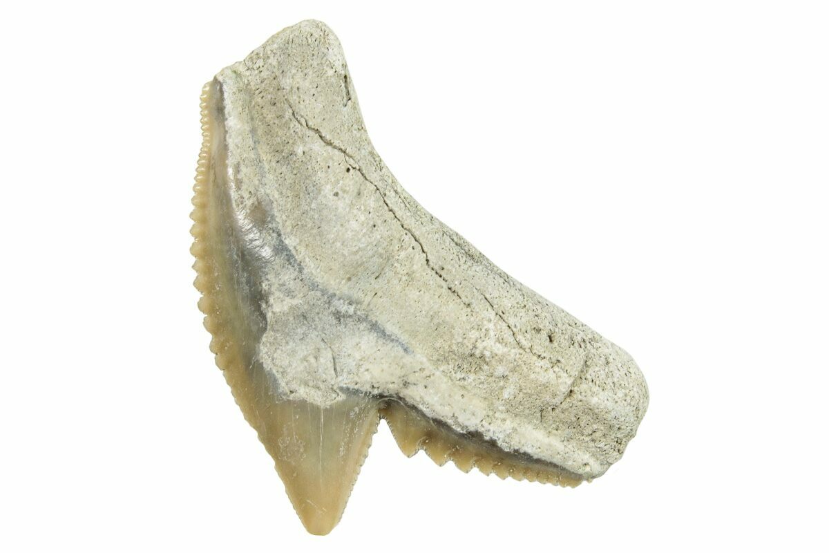 The best way to identify Galeocerdo teeth by species is to look at the size of the tooth and the complexity of the serrations. Generally, larger teeth with more complex serrations point to a shark from a time closer to the present. For example, a tooth from G. cuvier is much bigger and more serrated than a tooth from G. aduncus or G. latidens.