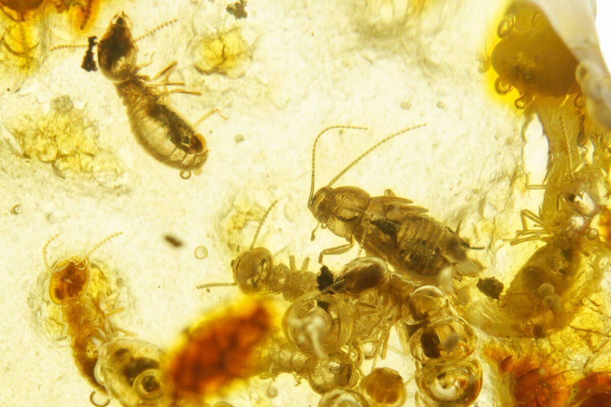 Amber is fossilized tree resin that frequently contains inclusions such as plant matter, fungi, and insects. Copal is a younger resin that has not fully fossilized, but may still be tens of thousands to several million years old. This copal is often marketed as "young amber", which many consider a misnomer, but the exact line between copal and amber is a little bit blurry. This is especially true with modern treatment techniques that can artificially age copal into amber.