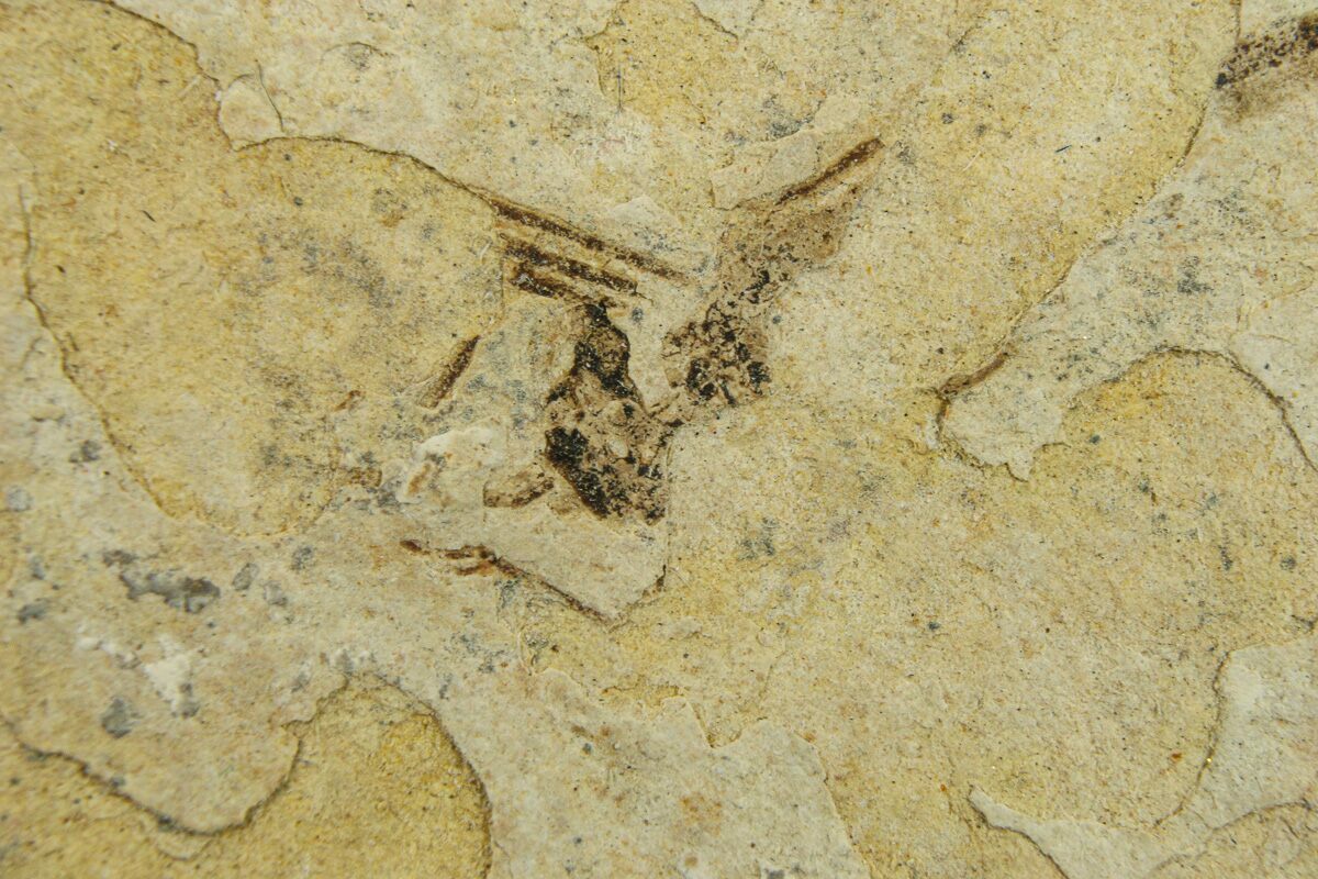This is a nicely preserved partial fossil fly of the genus Tipula, collected from an Oligocene-aged shale deposit near Cereste in southern France. It measures 1.04" long.