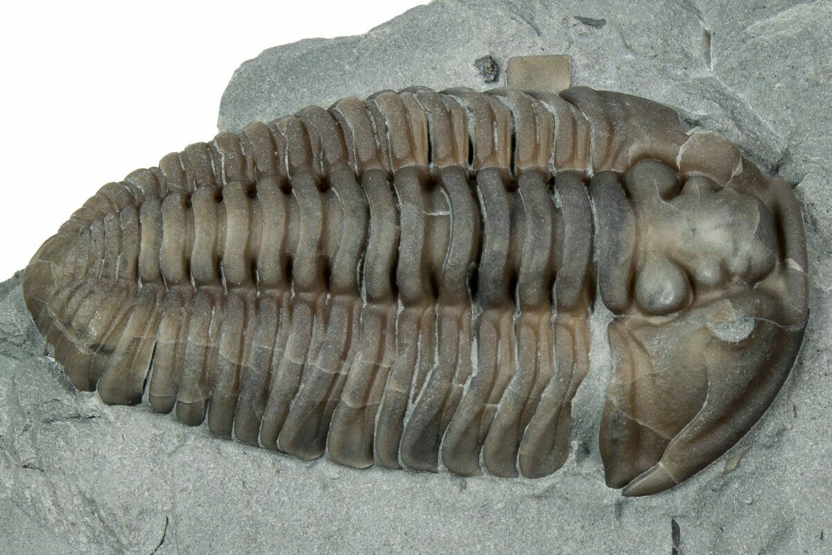 Flexicalymene is often found enrolled, seemingly to protect its softer underside from threats on a sea floor teeming with ancient life and increasingly complex predators. Sealing itself inside the hard carapace may be a protective maneuver, or it may simply be the pose of death.