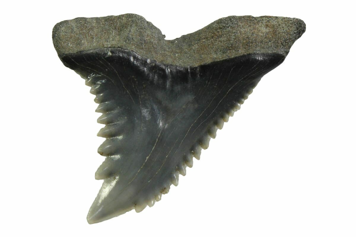 Hemipristis teeth are coveted for their exotic shape and beautiful color. Teeth from the Atlantic coast along the American South are especially prized.