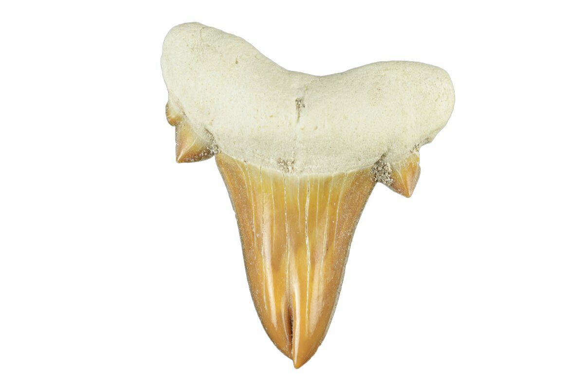 Otodus is an extinct mackerel (Lamniformes) shark that lived during the Eocene, approximately 54 million years ago. This is the same family of sharks that includes the Great White and the largest shark ever known, the Megalodon. These teeth are collected during phosphate mining operations near Khouribga, Morocco. While Otodus teeth are common fossils at these mines, large, good quality specimens are hard to find since they are often destroyed by the mining equipment.