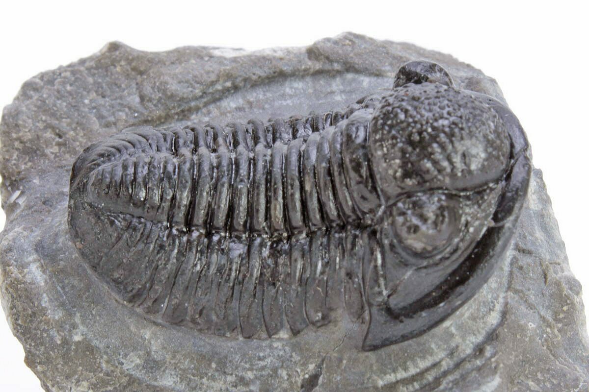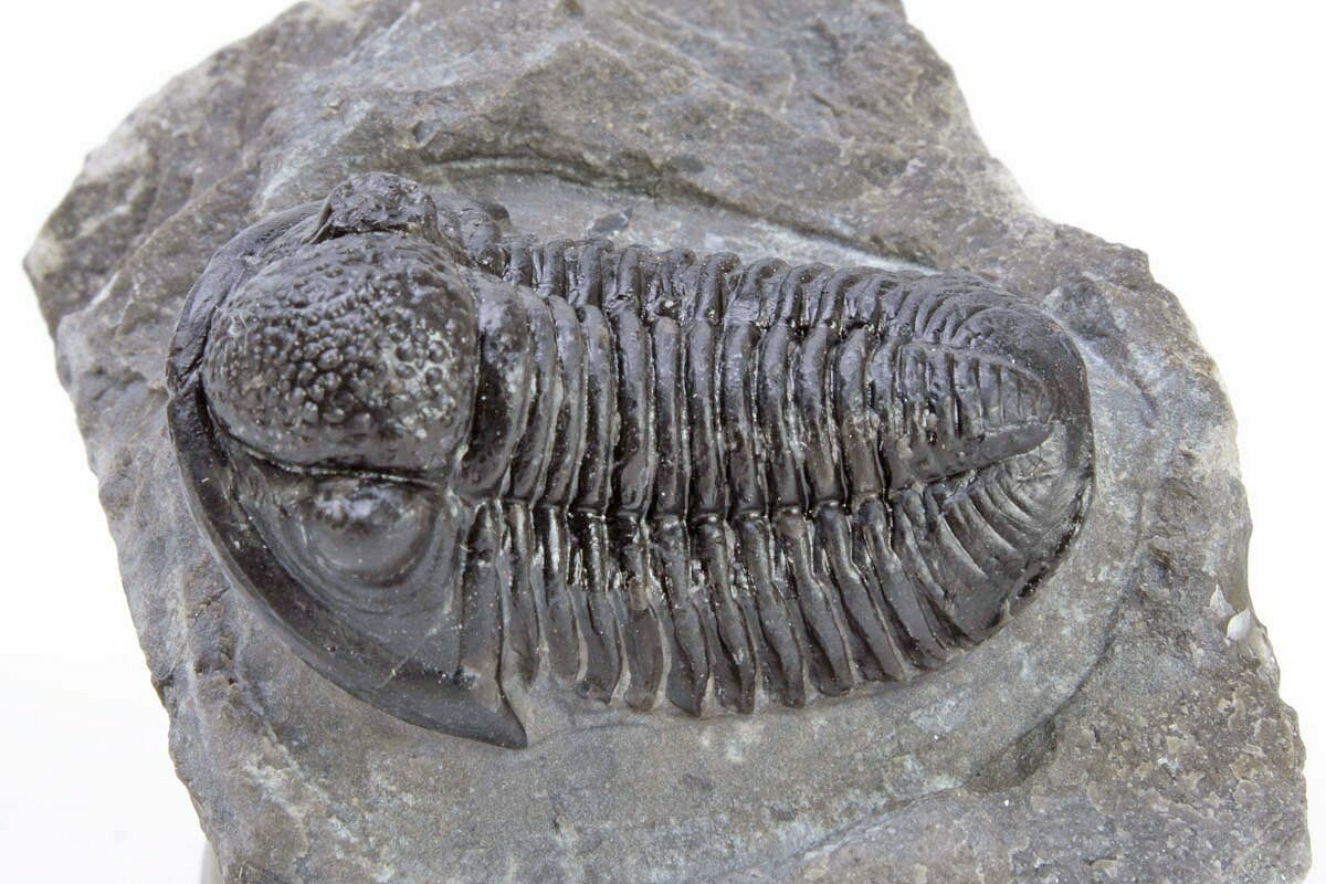 This is a detailed, 1.1" long (if outstretched) specimen of the proetid trilobite, Gerastos, collected from Issoumour, Morocco. It's nicely inflated with great shell detail.