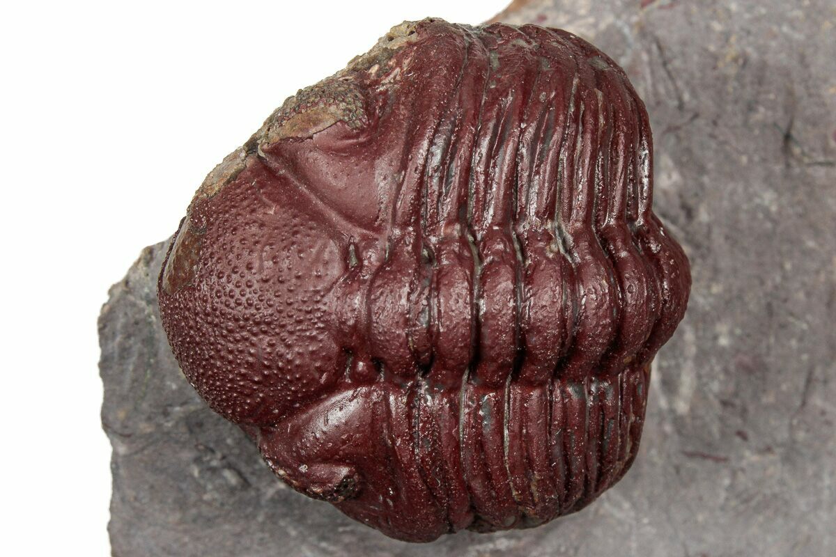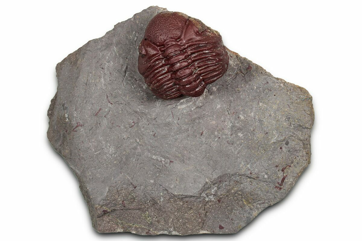 The trilobites were hard to find complete at this location and according to my sources, the locality has been collected out recently, so the there probably won't be many more of these red trilobites coming onto the market.