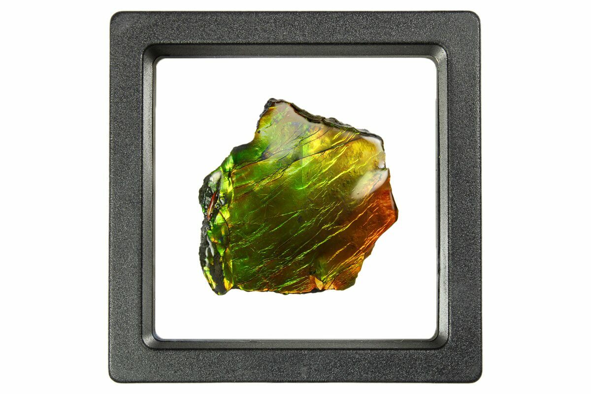 This is a 1.1" wide section of brilliant, iridescent ammolite from the Bear Paw Shale of Alberta, Canada.