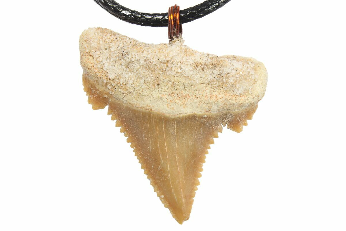 1.12" Serrated, Fossil Paleocarcharodon Shark Tooth Necklace