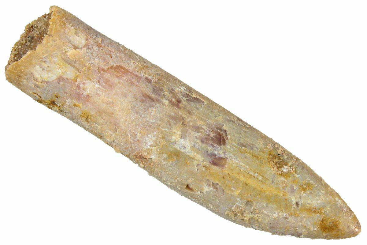 This is a 1.13" long tooth from a Moroccan titanosaur that is currently unidentified. It comes from the Late Cretaceous, Kem Kem Beds of Morocco, home to such meat eating giants as Spinosaurus and Carcharodontosaurus.