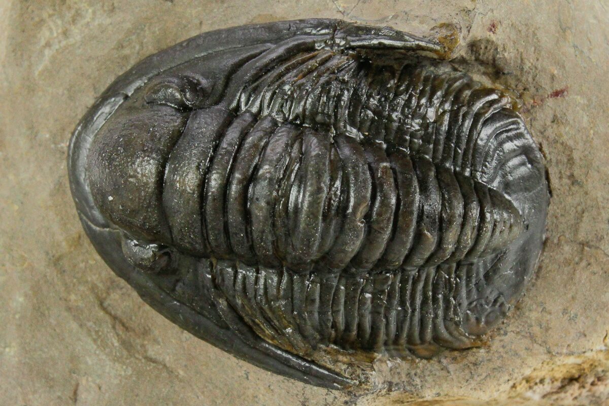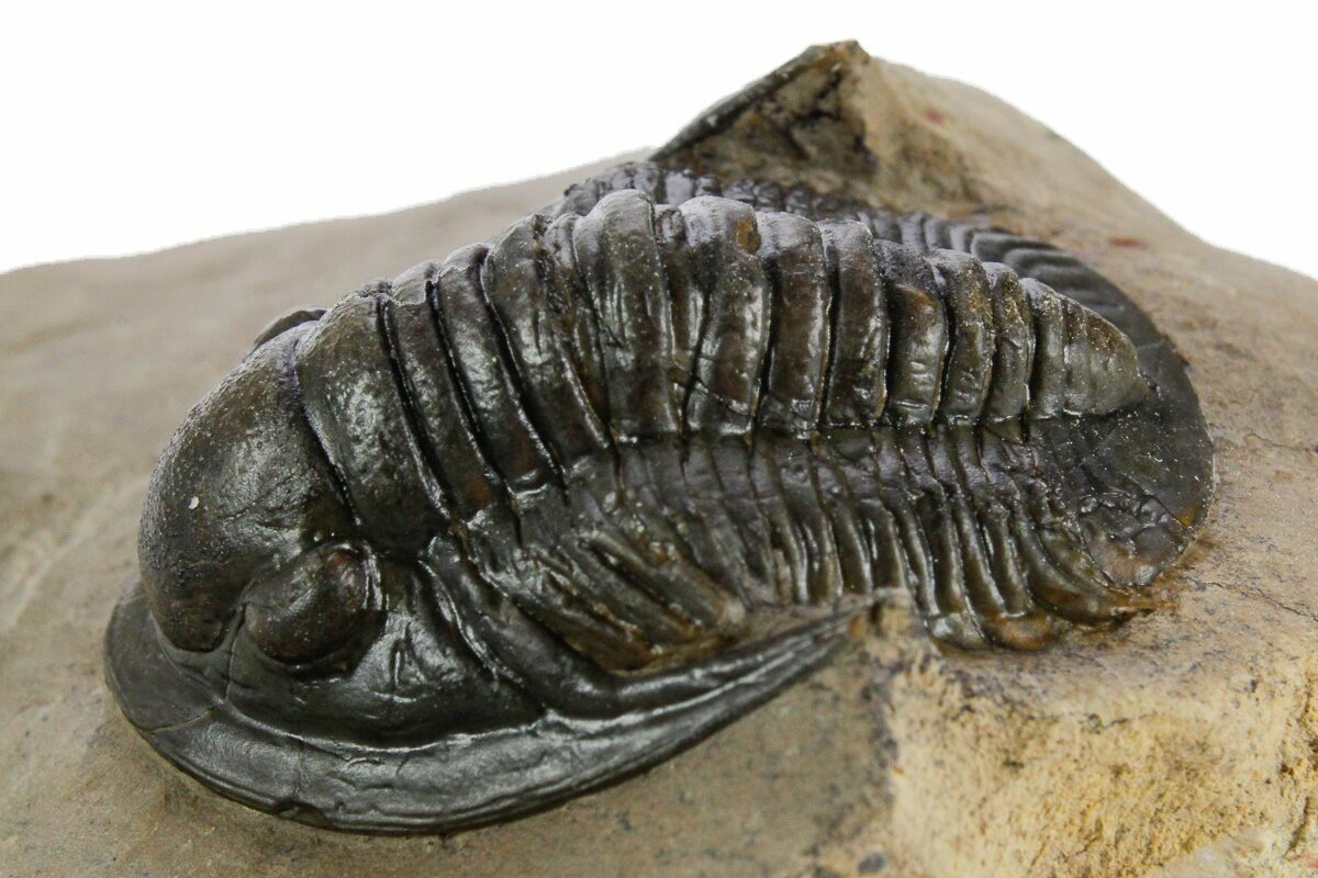 This is a rarely seen Dalejeproetus sagaouii from Atchana, Morocco. You see far fewer examples of this genus than most of the common proetids from Morocco. It's 1.15" long and well prepared with no restoration.