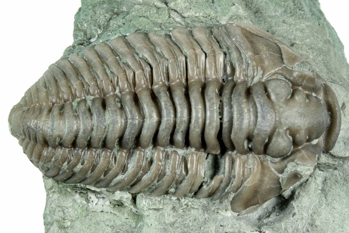 Flexicalymene is often found enrolled, seemingly to protect its softer underside from threats on a sea floor teeming with ancient life and increasingly complex predators. Sealing itself inside the hard carapace may be a protective maneuver, or it may simply be the pose of death.