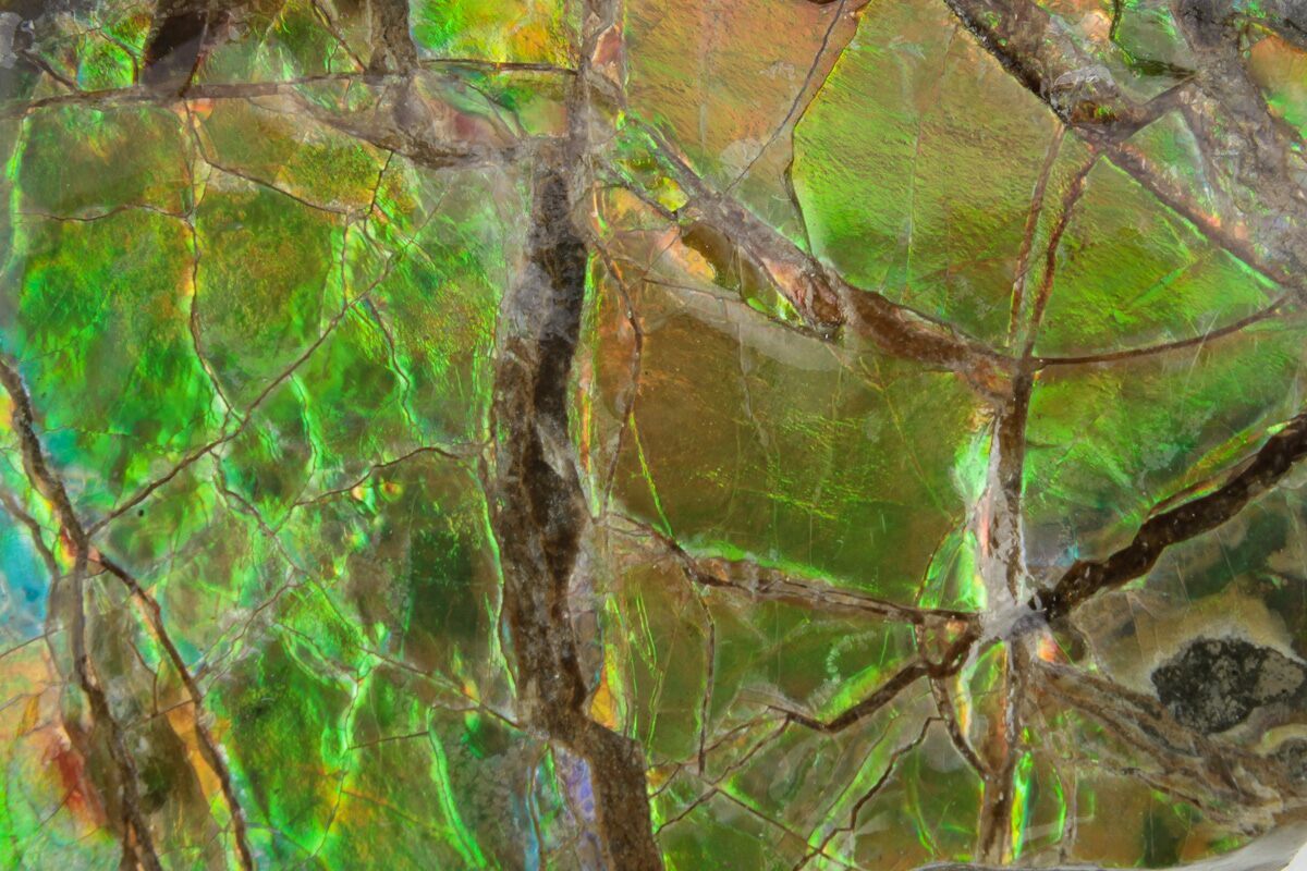 Ammolite is an opal-like gemstone found primarily in Alberta, Canada. It is a kind of fossilized shell from ammonites, which in turn are composed primarily of aragonite, the same mineral contained in nacre (mother-of-pearl). The shell's microstructures are often preserved. In 1981, ammolite was given official gemstone status by the World Jewellery Confederation (CIBJO).