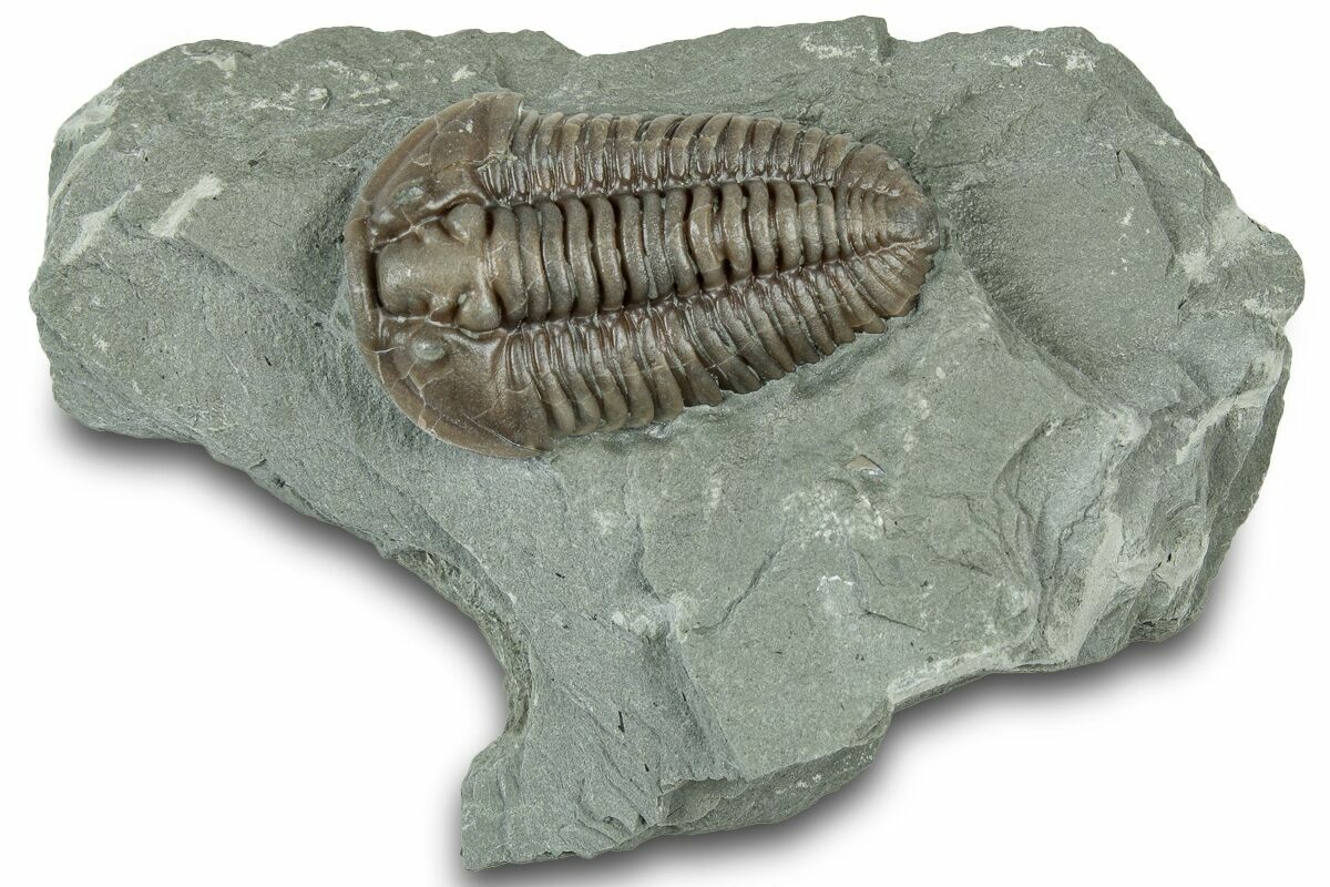 Flexicalymene is often found enrolled, seemingly to protect its softer underside from threats on a sea floor teeming with ancient life and increasingly complex predators. Sealing itself inside the hard carapace may be a protective maneuver, or it may simply be the pose of death.