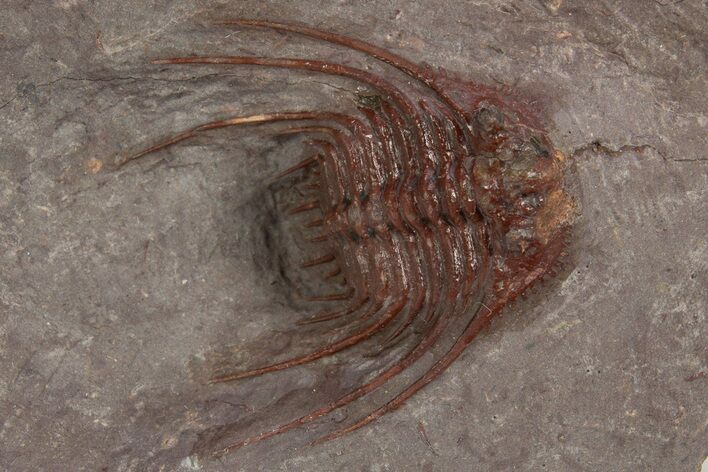 The trilobites were hard to find complete at this location and according to my sources, the locality has been collected out recently, so the there probably won't be many more of these red trilobites coming onto the market.