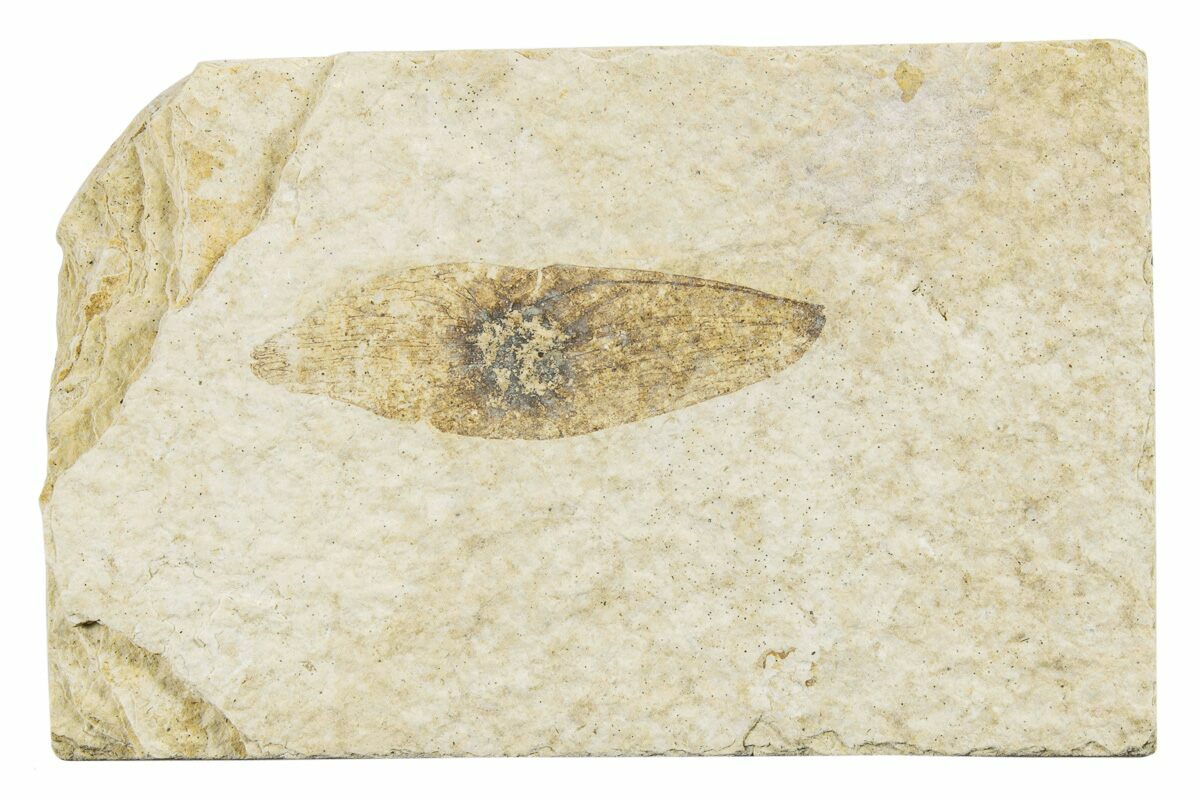 While this formation is best known for well-preserved fossil fish found in Wyoming, other sections of the formation contain very diverse flora and insect fauna. This specimen comes with an acrylic display stand.