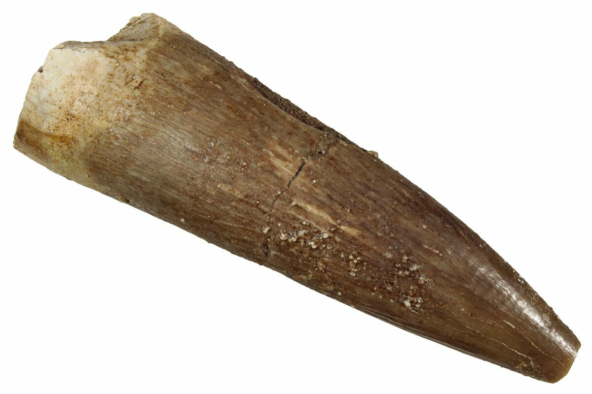 This is a 1.30" tooth from the Cretaceous marine reptile Zarafasaura oceanis, a long-necked plesiosaur known from the phosphate-rich Oulad Abdoun Basin of Morocco. The enamel displays nice preservation and natural coloration.