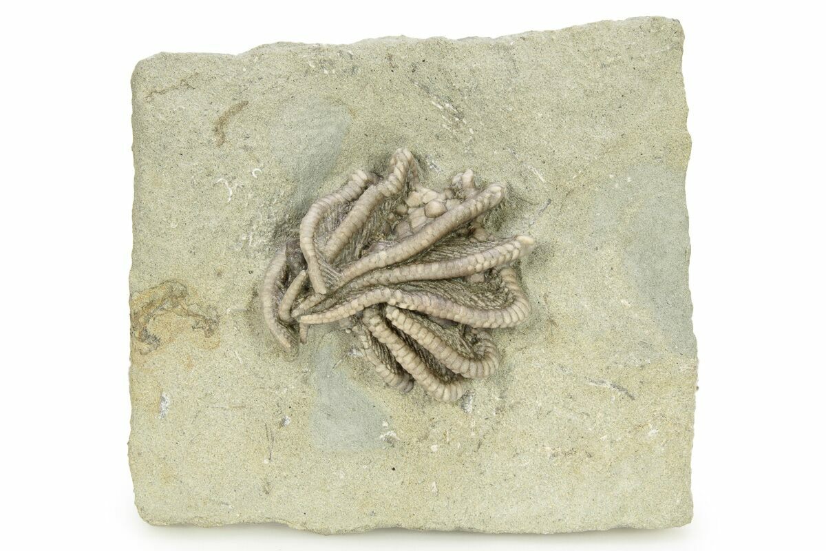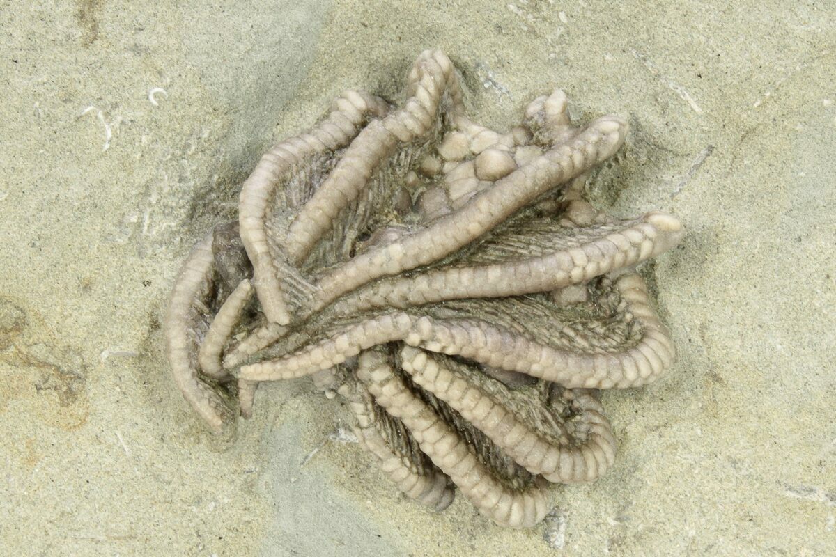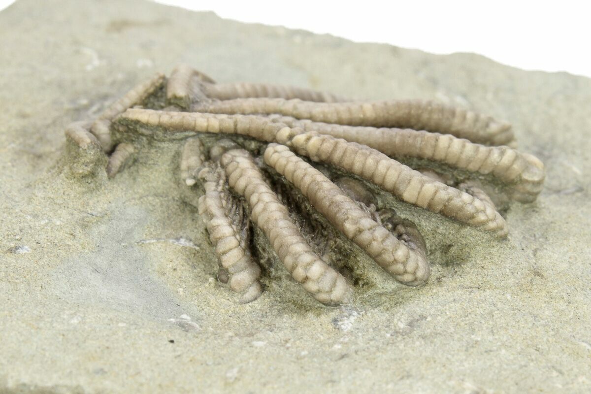 Crinoids from the Ramp Creek Limestone were likely buried in sediment from nearby deltas during storms. The resulting siltstone deposits are soft enough that fossils can be extracted in exquisite, three-dimensional relief.