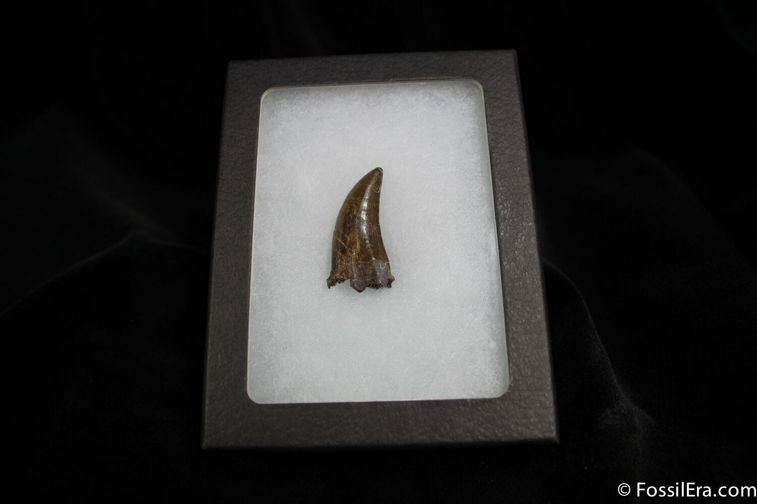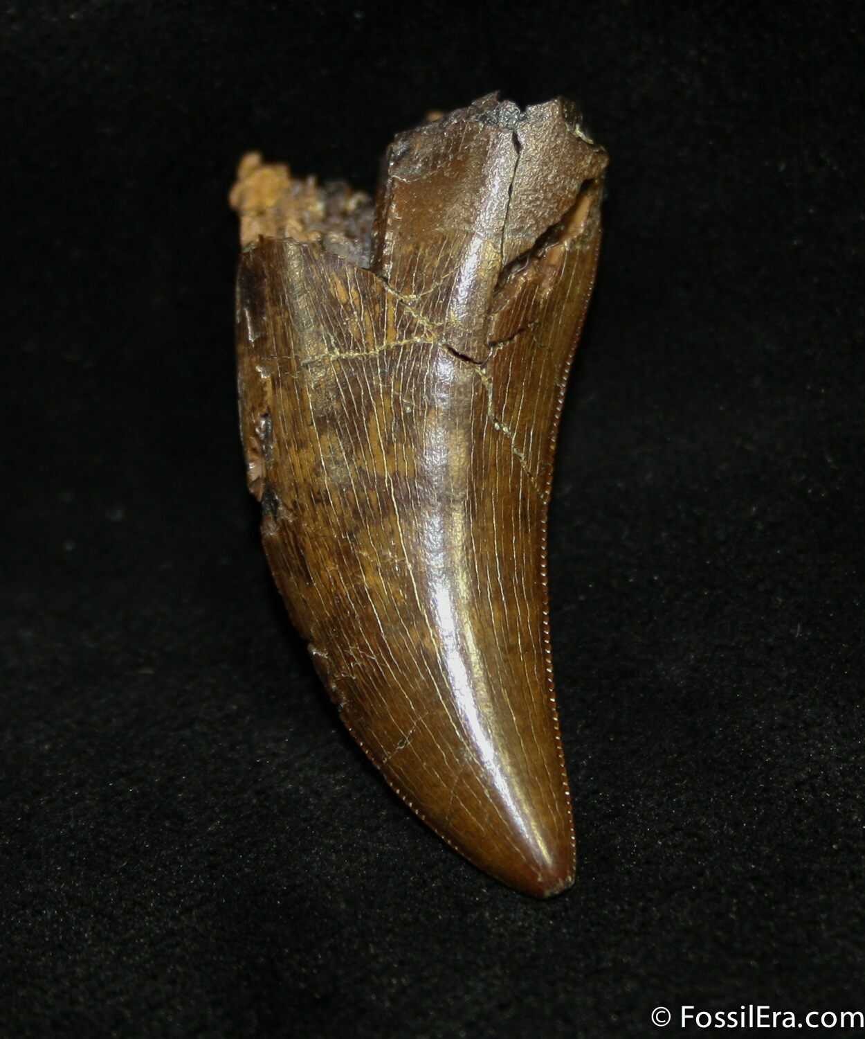 This is a gorgeous Tyrannosaurid tooth with beautiful enamel and some killer serrations. It's attributed to Nanotyrannus lancensis, though there is a widely held believe that Nanotyrannus is simply a juvenile T-Rex and not it's own species.