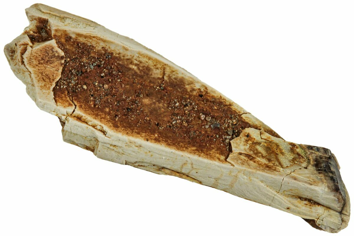 This is a serrated, 1.37" long Tyrannosaurus rex tooth section, collected from the Hell Creek Formation of Eastern Montana.
