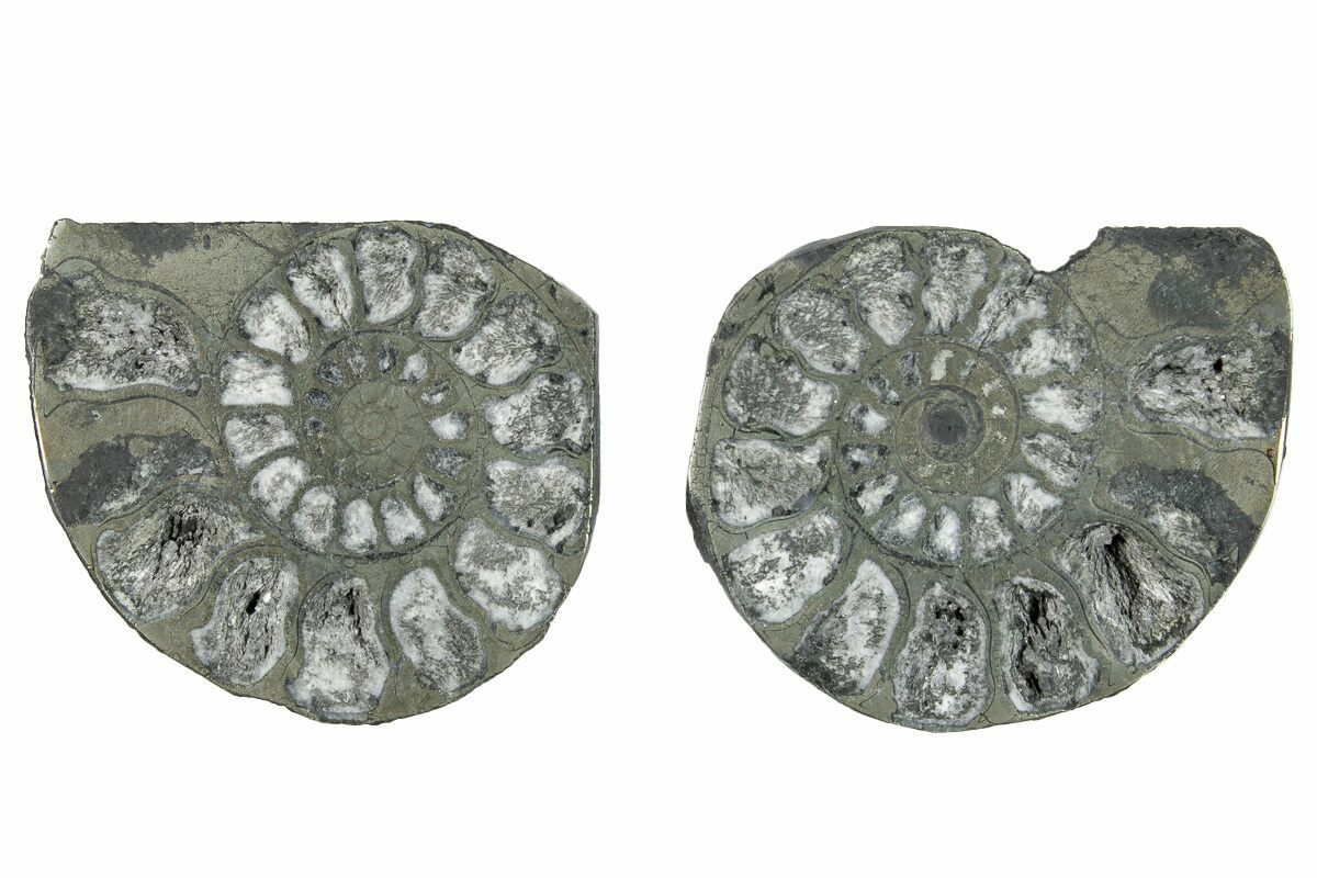 1.4" Pyritized Cut Ammonite Fossil Pair - Morocco