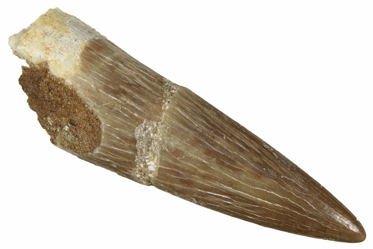 This is a 1.41" tooth from the Cretaceous marine reptile Zarafasaura oceanis, a long-necked plesiosaur known from the phosphate-rich Oulad Abdoun Basin of Morocco. The enamel displays nice preservation and natural coloration.