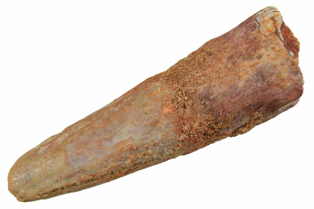 This is a 1.41" long tooth from a Moroccan titanosaur that is currently unidentified. It comes from the Late Cretaceous, Kem Kem Beds of Morocco, home to such meat eating giants as Spinosaurus and Carcharodontosaurus.