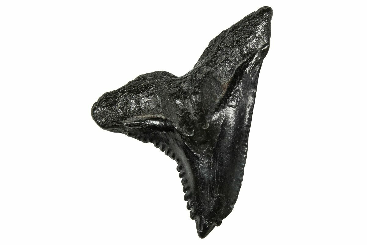 This is a 1.42" serrated tooth from Hemipristis serra, also known as a snaggletooth shark. It was found in a river in South Carolina after eroding out of the Miocene-aged Hawthorn Formation.