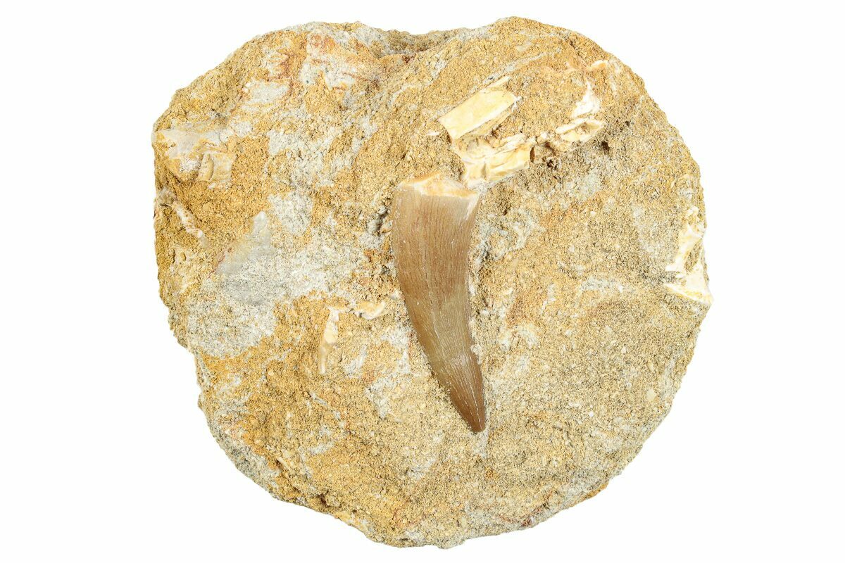 1.43" Fossil Plesiosaur (Zarafasaura) Tooth in Rock - Morocco