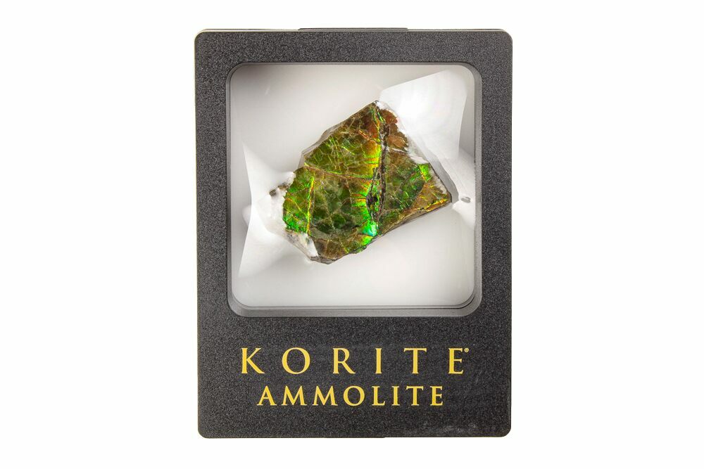 Ammolite is an opal-like gemstone found primarily in Alberta, Canada. It is a kind of fossilized shell from ammonites, which in turn are composed primarily of aragonite, the same mineral contained in nacre (mother-of-pearl). The shell's microstructures are often preserved. In 1981, ammolite was given official gemstone status by the World Jewellery Confederation (CIBJO).