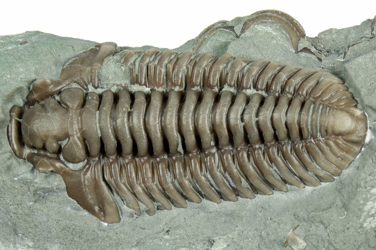 Flexicalymene is often found enrolled, seemingly to protect its softer underside from threats on a sea floor teeming with ancient life and increasingly complex predators. Sealing itself inside the hard carapace may be a protective maneuver, or it may simply be the pose of death.