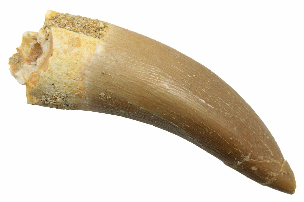This is a 1.48" long tooth from a large, cretaceous-aged plesiosaur (Zarafasaura oceanis). It was collected from the phosphate deposits in the Oulad Abdoun Basin of Morocco.