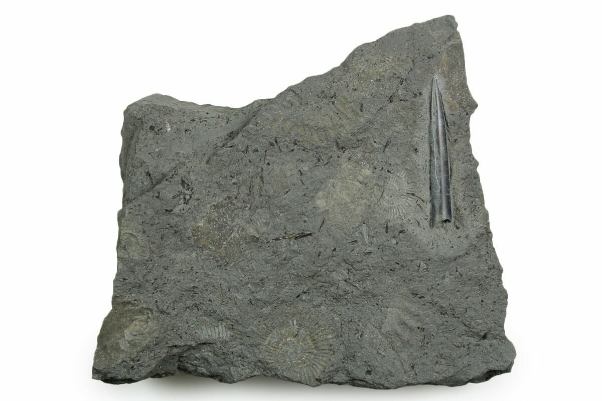 Belemnite: 1.5" long, Rock: 4.2 x 3.7"