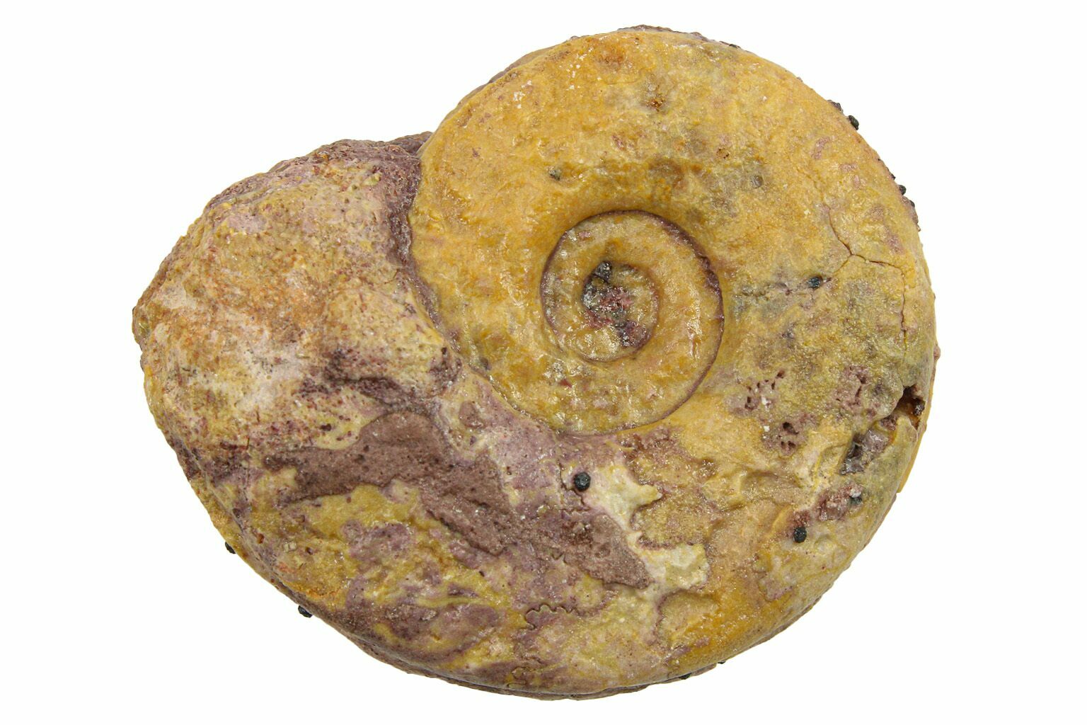 Ammonites were ancient marine cephalopods, similar to today's squids and octopuses, but with a defining feature: their distinctive, tightly coiled spiral shells. These shells, resembling those of modern nautiluses, served as both a protective home and a buoyancy aid, allowing ammonites to navigate the prehistoric seas with ease. First emerging around 240 million years ago in the Triassic Period, ammonites thrived for over 175 million years, adapting through numerous forms and sizes. As predatory creatures, they likely fed on smaller marine organisms, using their tentacles to capture prey. However, their long reign came to an end 65 million years ago at the close of the Cretaceous, coinciding with the mass extinction event that also eliminated the dinosaurs.