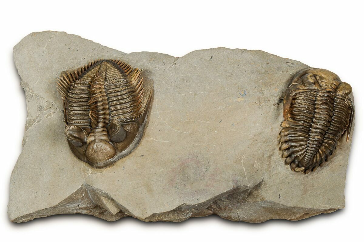 Naturally associated with the Erbenochile is a 1.4" long (if outstretched) Hollardops. Both are entirely free of restoration. A truly outstanding multiple trilobite specimen!