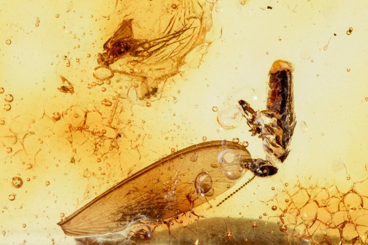 Amber is fossilized tree resin that frequently contains inclusions such as plant matter, fungi, and insects. Copal is a younger resin that has not fully fossilized, but may still be tens of thousands to several million years old. This copal is often marketed as "young amber", which many consider a misnomer, but the exact line between copal and amber is a little bit blurry. This is especially true with modern treatment techniques that can artificially age copal into amber.