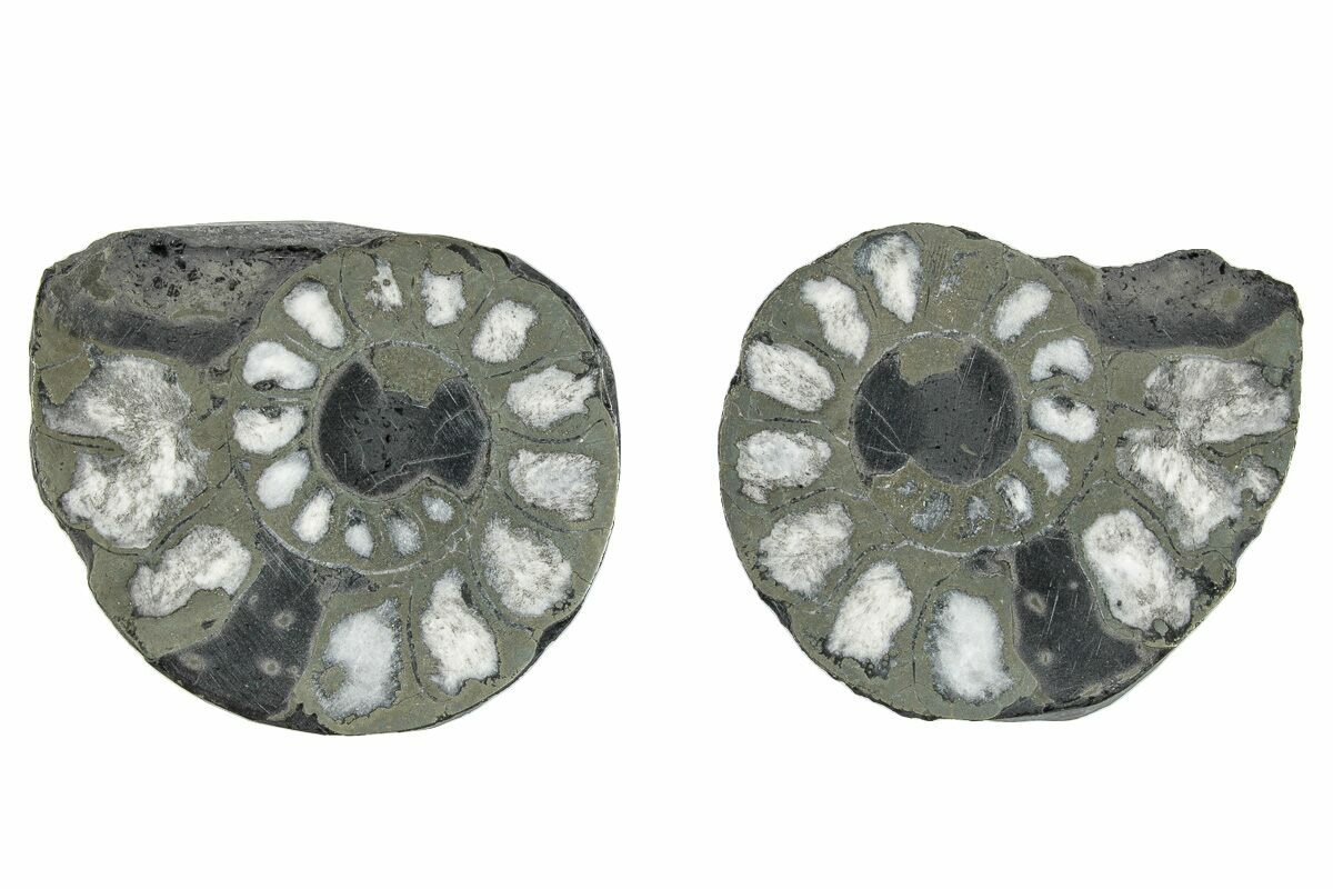 1.55" Pyritized Cut Ammonite Fossil Pair - Morocco