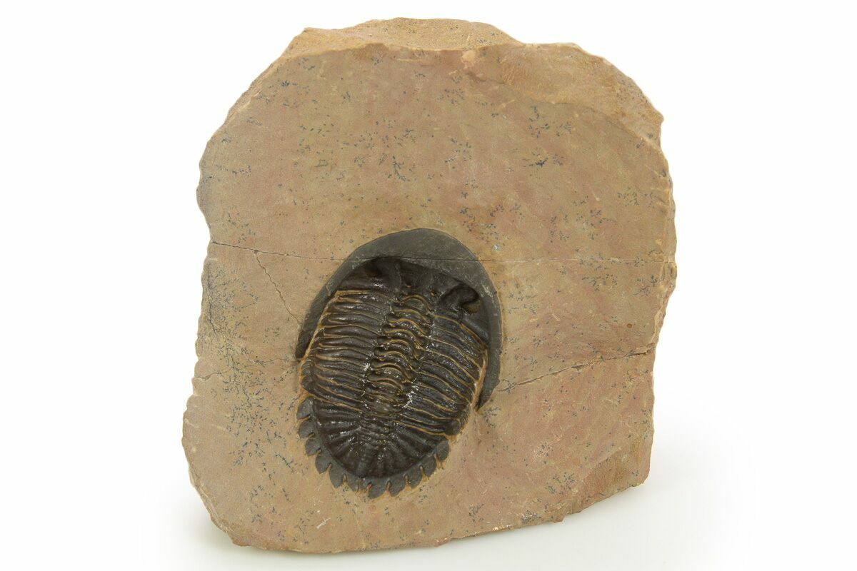 1.6" Chocolate-Brown Hollardops Trilobite - Ventral Presentation