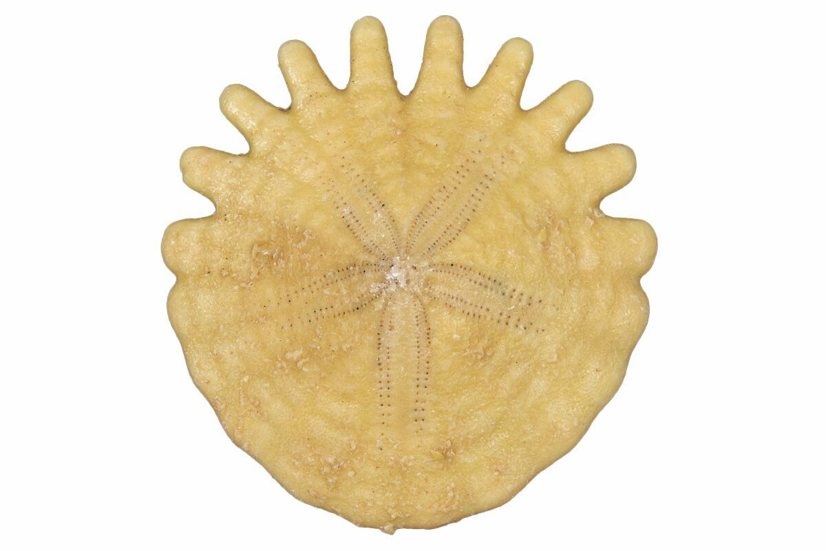 Heliophora is a genus of small sand dollars belonging to the family Rotulidae. The genus has distinctive indentations along the edge of the test (body), but the extent and depth of these can vary remarkably between individual specimens. In the case of these specimens the indentations are very pronounced.