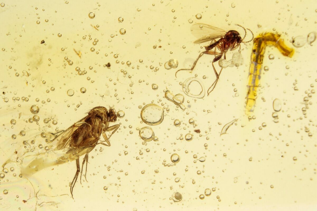 Amber is fossilized tree resin that frequently contains inclusions such as plant matter, fungi, and insects. Copal is a younger resin that has not fully fossilized, but may still be tens of thousands to several million years old. This copal is often marketed as "young amber", which many consider a misnomer, but the exact line between copal and amber is a little bit blurry. This is especially true with modern treatment techniques that can artificially age copal into amber.