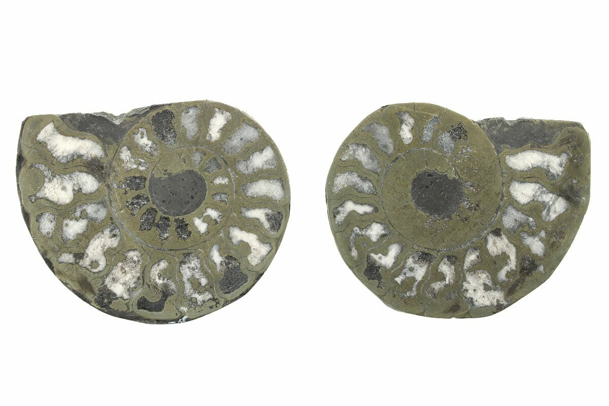 1.6" Pyritized Cut Ammonite Fossil Pair - Morocco