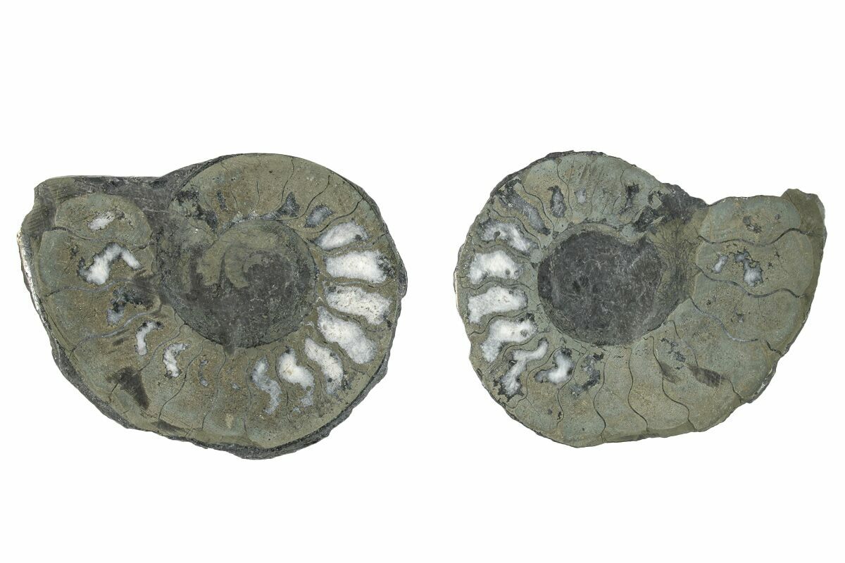 1.6" Pyritized Cut Ammonite Fossil Pair - Morocco