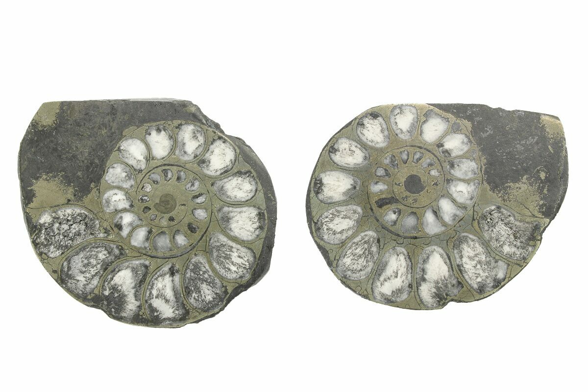 1.6" Pyritized Cut Ammonite Fossil Pair - Morocco
