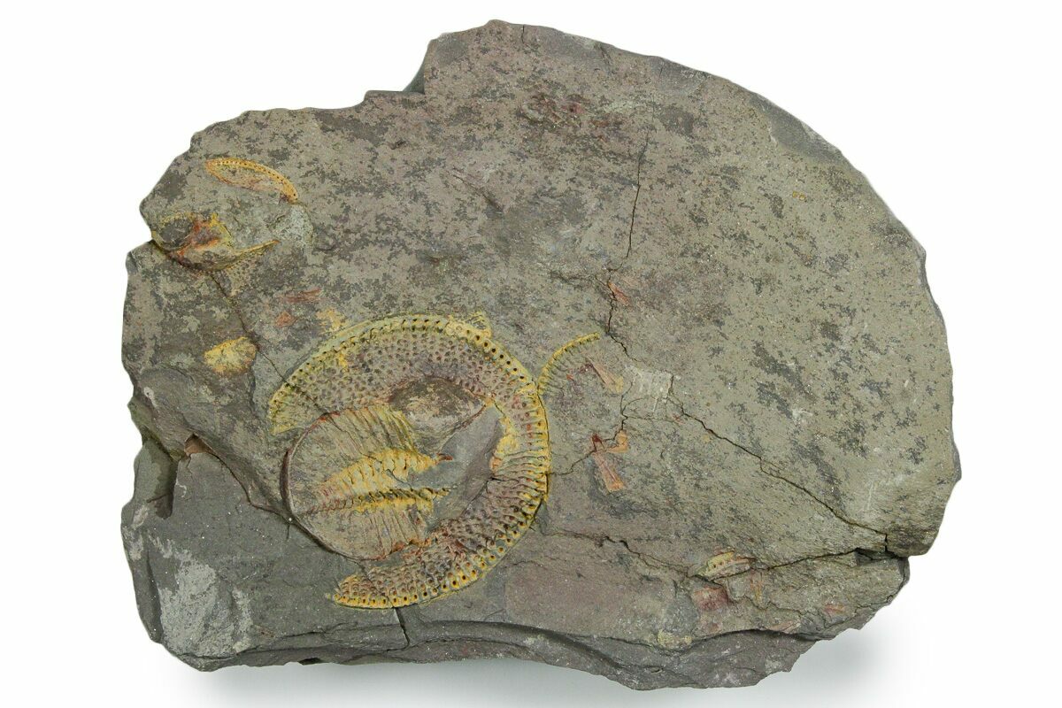 This trilobite has really dramatic cephalic pits along its "head shield". The exact purpose of these pits is unknown, but theories are that they could have had sensory purposes or aided in filter feeding.