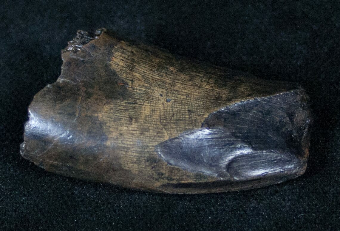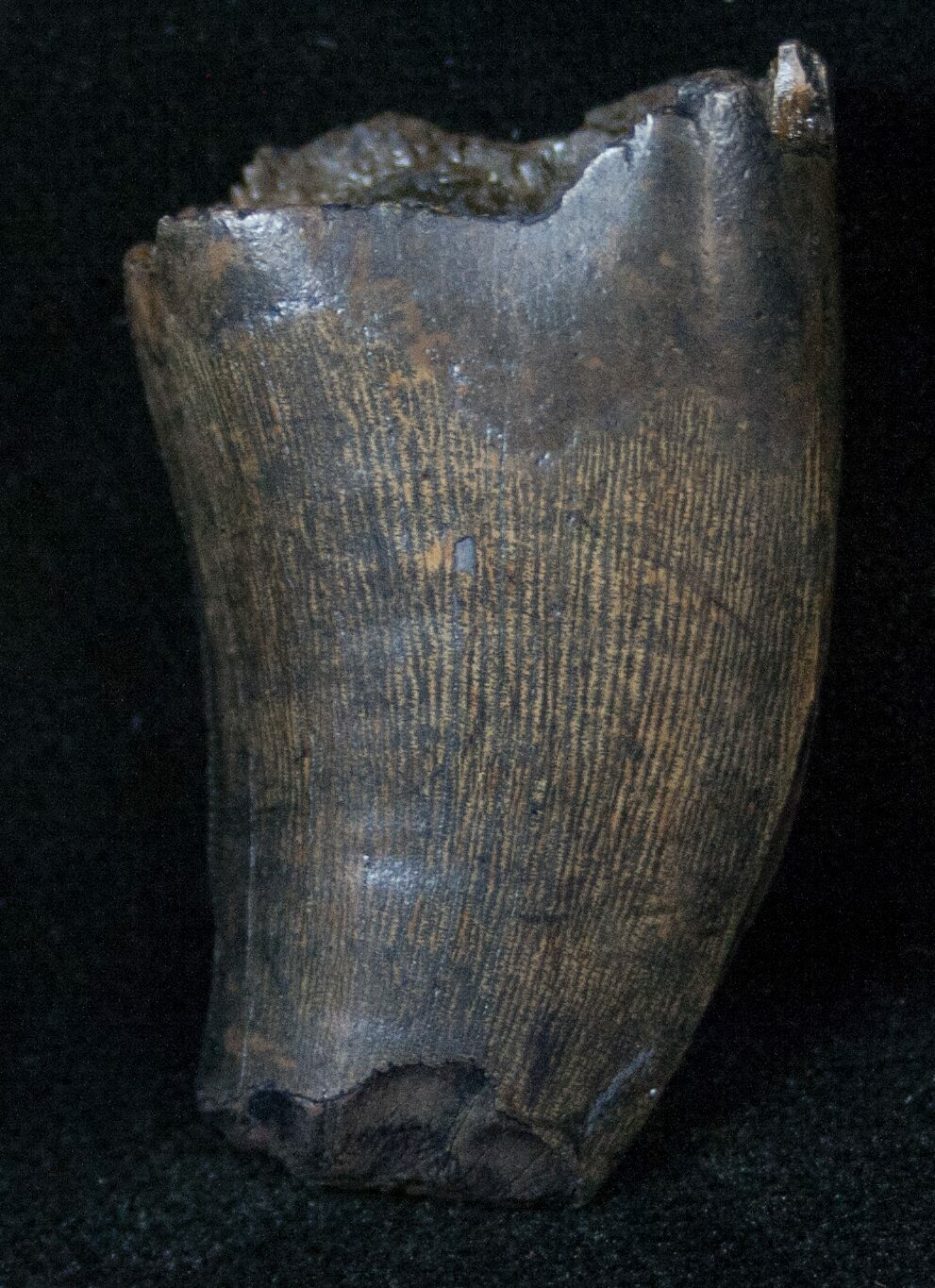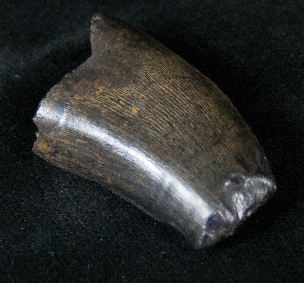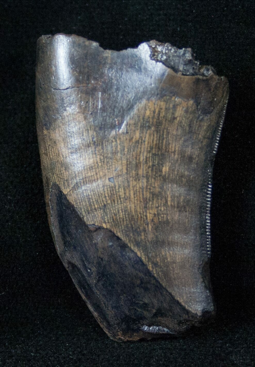 The tooth is 1.61" long and would be closer to 2 1/2" long had the tip not been damaged. There are really nice serrations preserved on the inner edge of the tooth and it has good enamel preservation. No restoration or repairs have been done to this tooth.