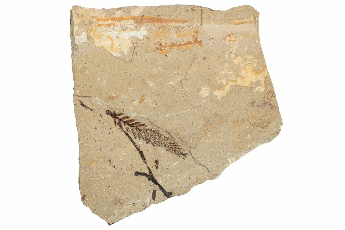 This is a 1.65" conifer fossil branchlet from the McAbee fossil beds of British Columbia, Canada. The specimen is most likely from the genus Metasequoia.