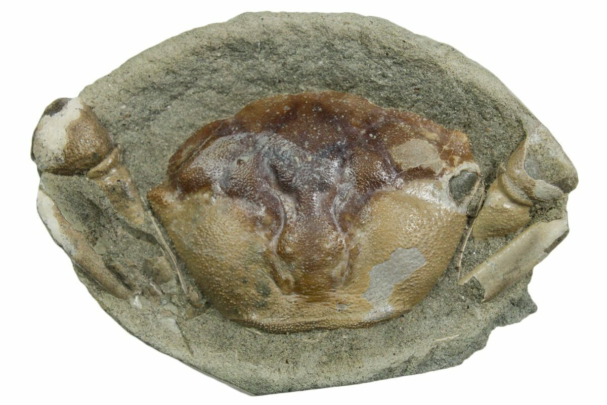 This is a wonderfully prepared example of the Late Eocene aged fossil crab Pulalius vulgaris. These crabs are found within hard concretions (a mass of rock that forms around organic manner) that erode out of the Lincoln Creek Formation, which must be broken open to find the crab. The crab must then be prepared from the hard concretion using mechanical tools, a very time consuming process.