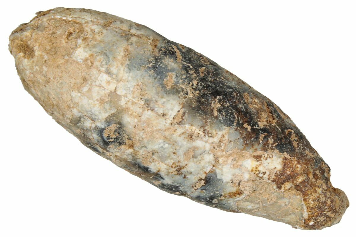 This is a 1.65" long fossil seed cone believed to be from a Cycadophyte plant. These cones are Late Eocene in age and are collected near Boujdour in the Sahara Desert of Morocco.