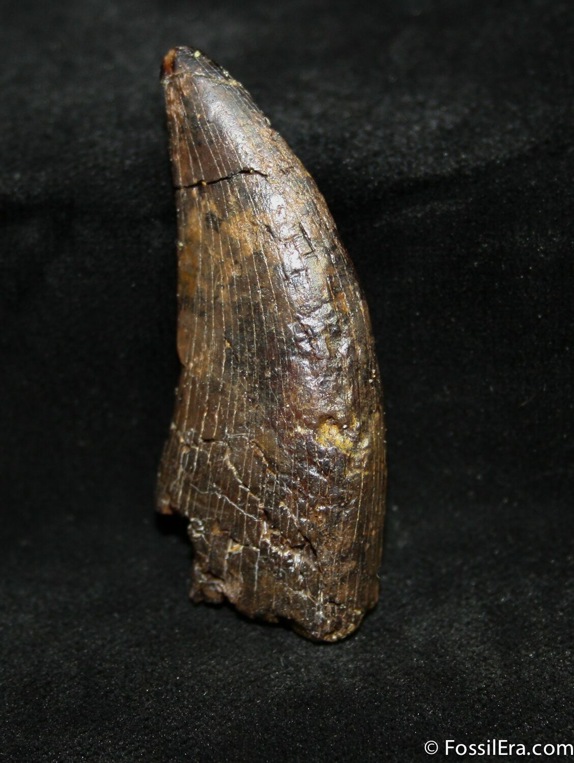 Here is a 1 3/4 inch long (straight line measurement) Tyrannosaurid tooth from South Dakota. The collector attributes it to Nanotyrannus lancensis though there is much belief in the paleontology community that Nanotyrannus is just a juvenile T-Rex (see video)