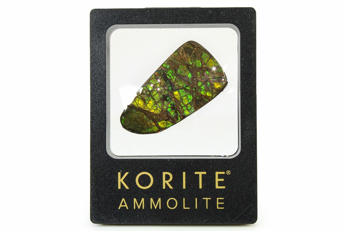 This is a 1.9" wide section of brilliant, iridescent ammolite from the Bear Paw Shale of Alberta, Canada.