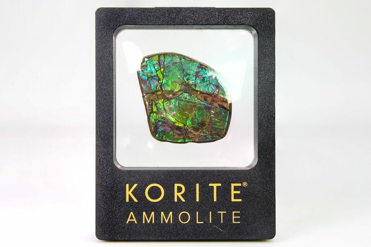 Ammolite is an opal-like gemstone found primarily in Alberta, Canada. It is a kind of fossilized shell from ammonites, which in turn are composed primarily of aragonite, the same mineral contained in nacre (mother-of-pearl). The shell's microstructures are often preserved. In 1981, ammolite was given official gemstone status by the World Jewellery Confederation (CIBJO).