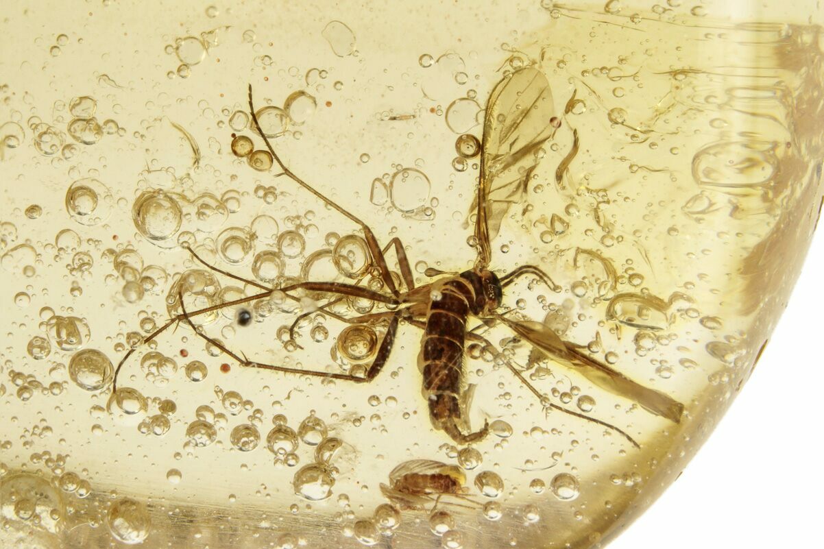 Amber is fossilized tree resin that frequently contains inclusions such as plant matter, fungi, and insects. Copal is a younger resin that has not fully fossilized, but may still be tens of thousands to several million years old. This copal is often marketed as "young amber", which many consider a misnomer, but the exact line between copal and amber is a little bit blurry. This is especially true with modern treatment techniques that can artificially age copal into amber.